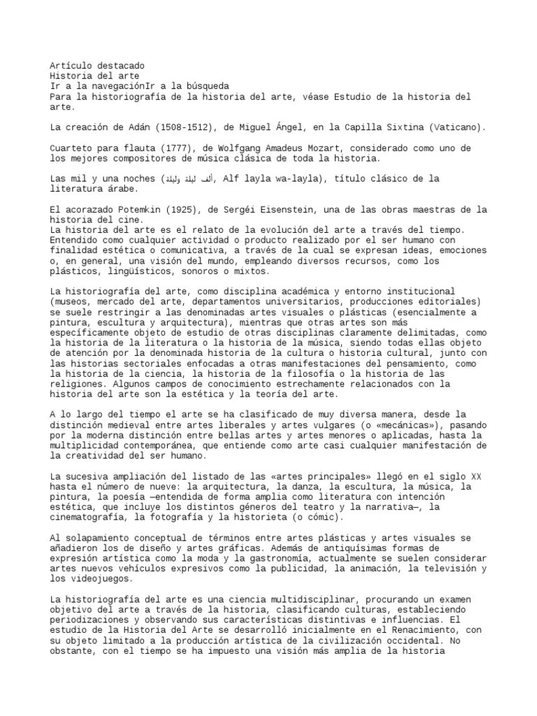 La arquitectura es el arte de proyectar y construir edificios y otras estructuras y espacios. Los primeros artesanos fueron los primeros arquitectos y escultores de la historia... La pintura es la técnica de crear imágenes a través de la aplicación de color sobre cualquier superficie.